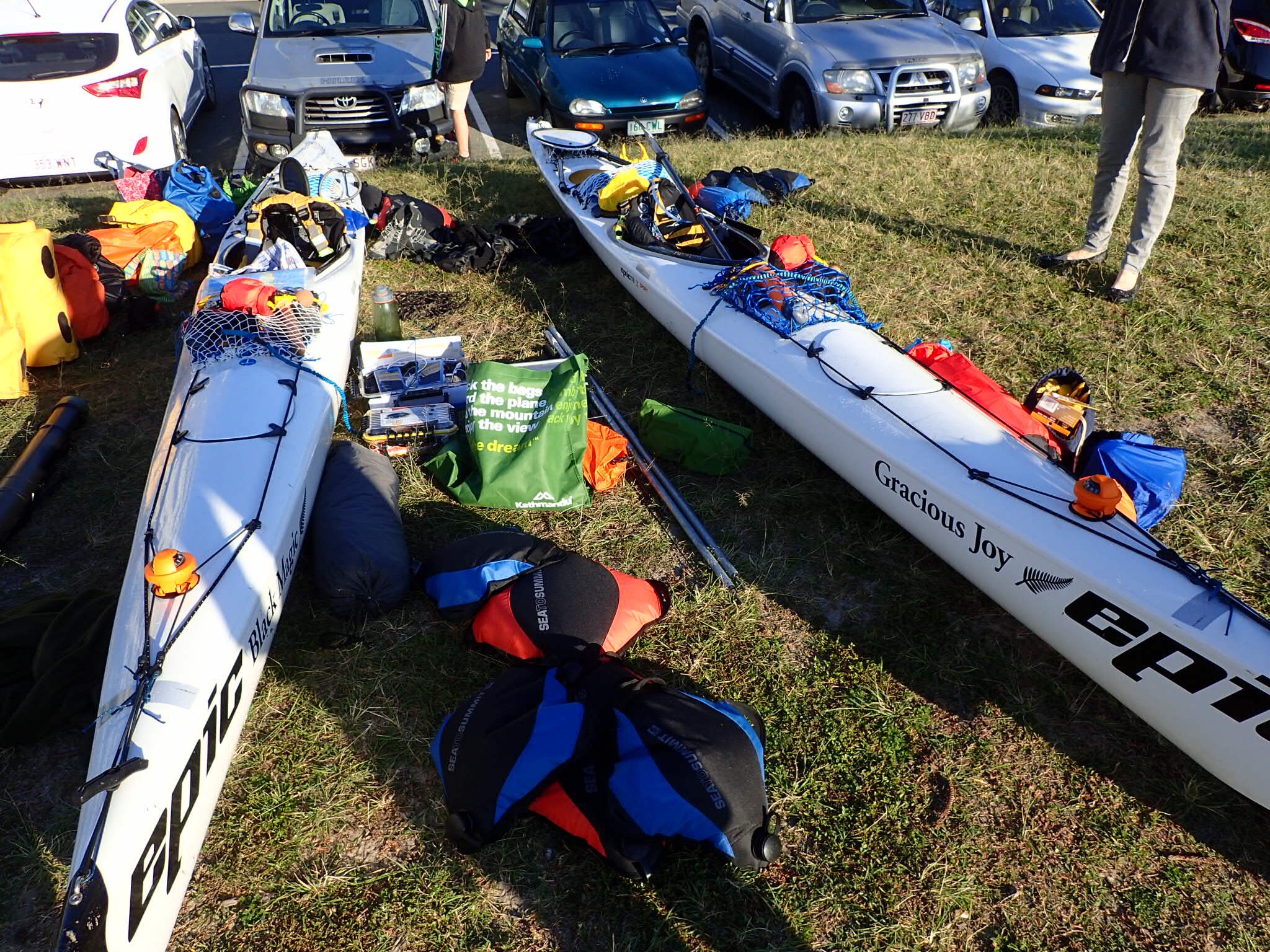 The answer is yes, just! It is amazing how much you can fit in these kayaks – it is also very good that they still float once we are in them. They are noticeably heavier and a lot lower in the water, a lot more stable with more weight. Despite the weight they still paddle beautifully. Seven nights left in a comfortable in a comfortable bed. DT
