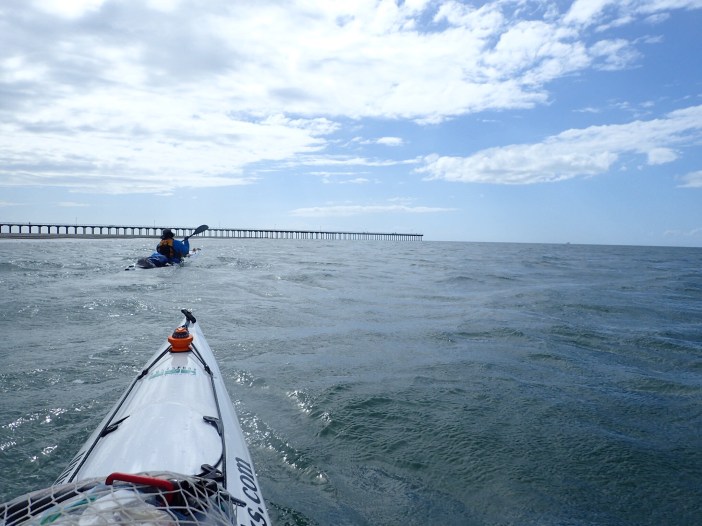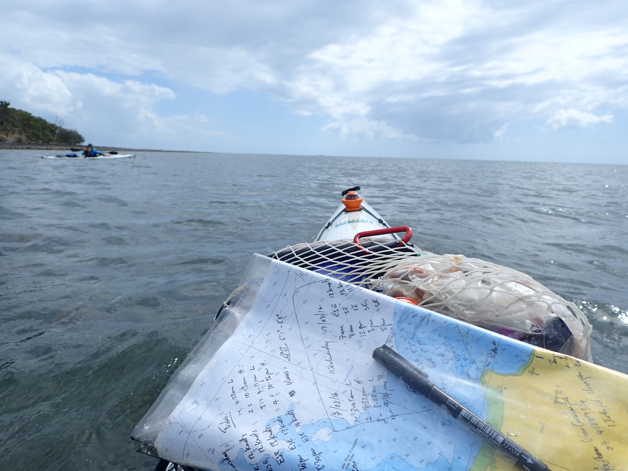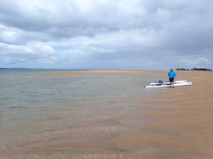 We got smacked in the face by rain and wind half way across to Hervey Bay so took shelter on Round island, pretty much a great big sand dune in the middle of the ocean. It was perfectly placed and we were very thankful it was there, so 20 minutes later we were rested and on our way again. The great Hervey Bay sand bar at five kilometres long took us both by surprise but treated us with a dolphin display – the video footage above doesn’t do them justice – they were born to have fun.