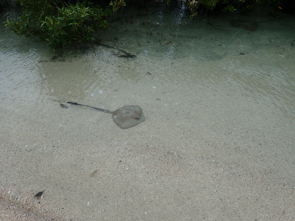 My grandfather would sit us down by the rivers in New Zealand when we were little boys and coach us to be still and quiet, he said when you sit quietly in nature the creatures will get curious and seek you out. He was dead right. When being immersed in the natural environment for weeks on end it is incredible what you start to notice. I swear all of your base senses increase in ability and function the longer you are away from civilisation. You just start seeing things you would never have noticed before. The pleasure this little stick insect gave us checking out our kayaks and equipment was better than a TV show. He was relentless in his exploration of the new invaders of his home, he was great fun. Similarly when you stood still in the shallow water sting rays would swim up to your feet to check out what you are. It is a little unnerving at first but when you realise they are just doing what you are doing it becomes fun.