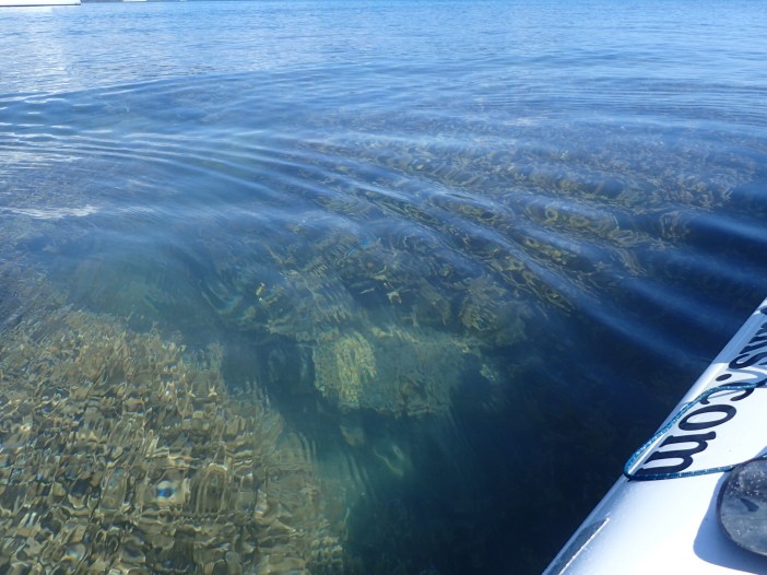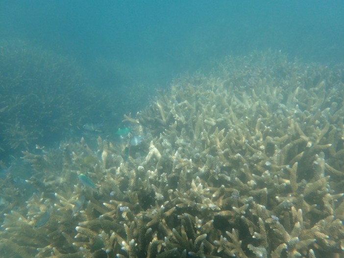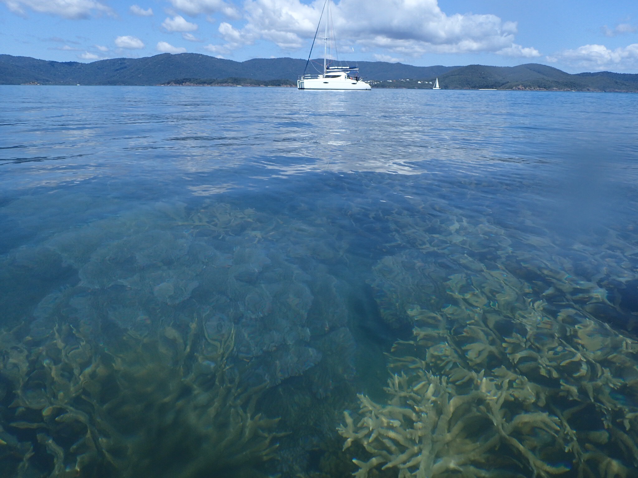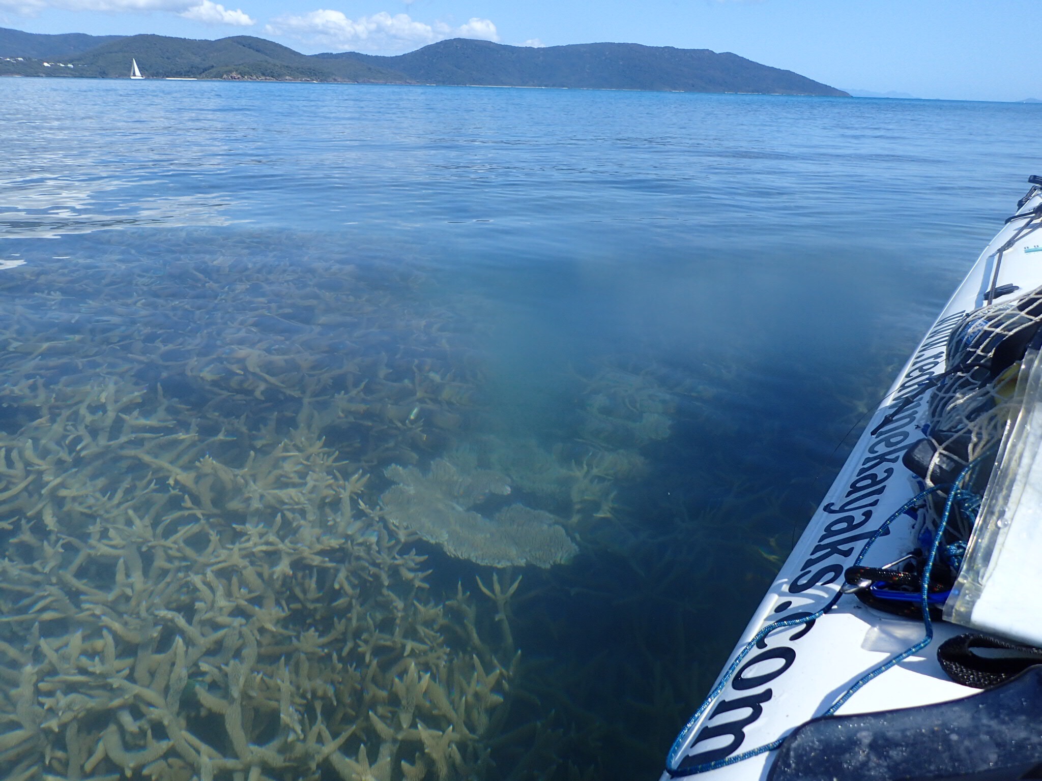 Coral gardens centremetres under our kayaks at Sandy beach, South Molle island.