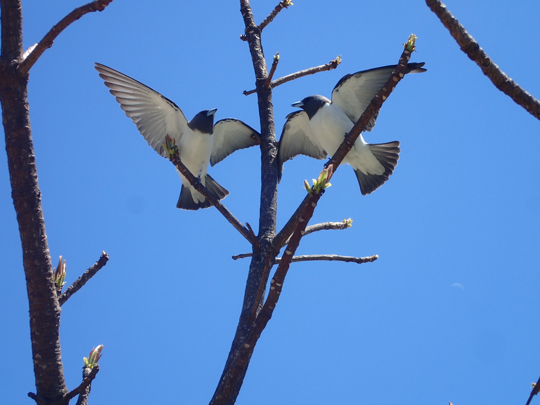 18 knots of northerly wind was whistling through the trees at Airlie Beach. These two were sitting in the top of the tree with their wings feathering the wind while holding onto the branch. They did this for at least five minutes before separating and landing in another tree to repeat the game. I am not going to tell you their name – it is my hope that you might find them interesting enough to research what they are.