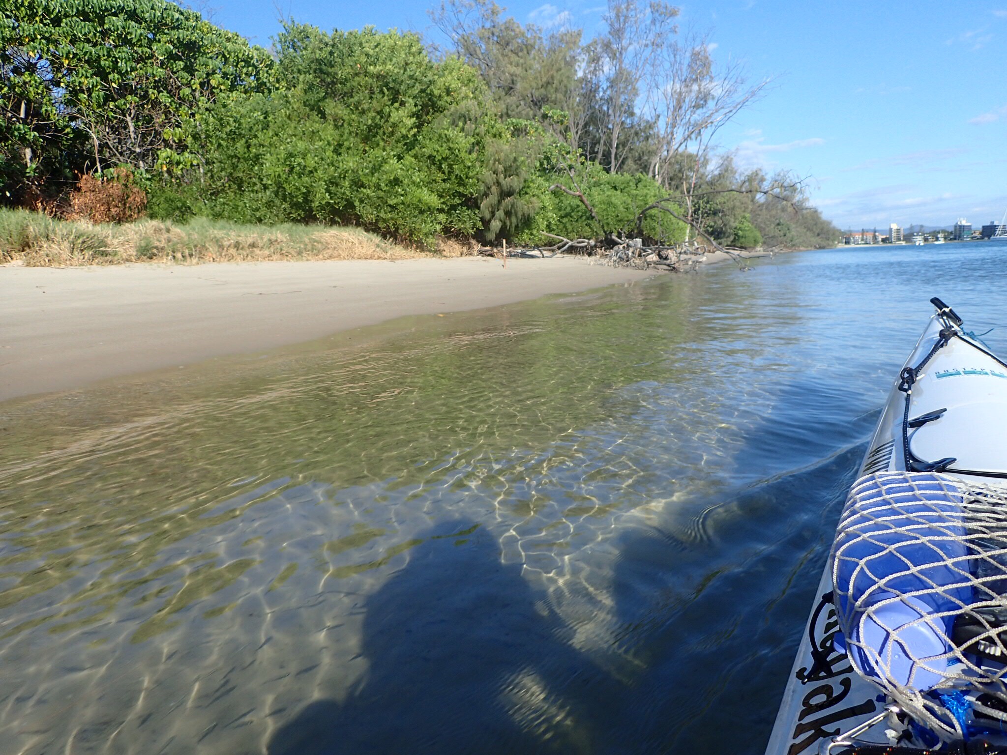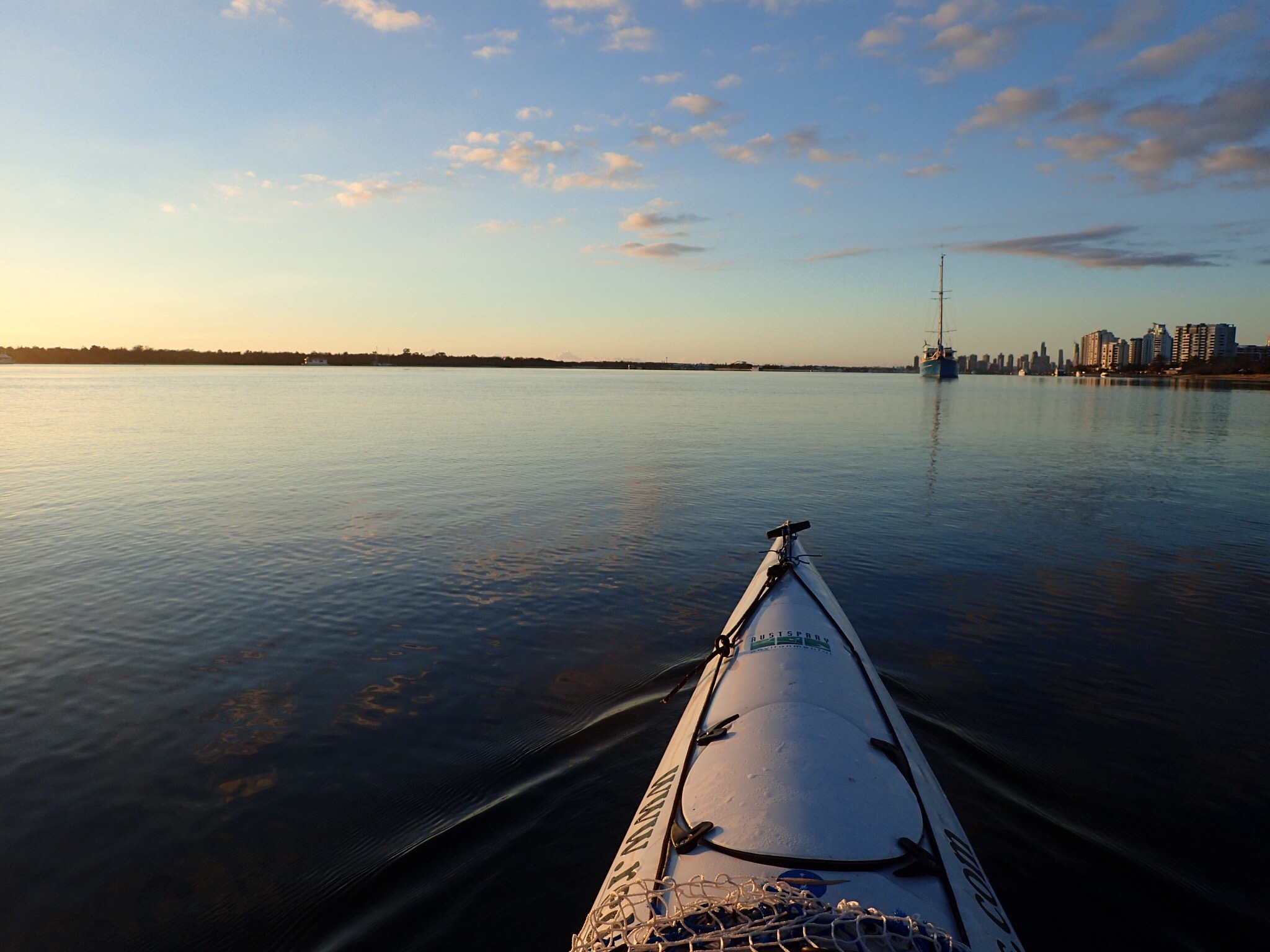Early morning on the Broadwater is a great place to start the day. I got to watch the resident pod of Dolphins chase small fish who were tail dancing to get away from them, a large Eagle Ray swam directly under my boat on the tip of the north wall of Wave Break Island. I got to say high to several paddle boarders and other kayakers who were out enjoying the water on the way. Three rowing eights were out training this morning, watching them carve through the water was impressive. This week we have 3 metre swells forecast for the coast with strong winds, I am gong to stay training inside South Straddy but will likely have a bit of fun inside the Seaway riding waves onto Wave Break island. DT